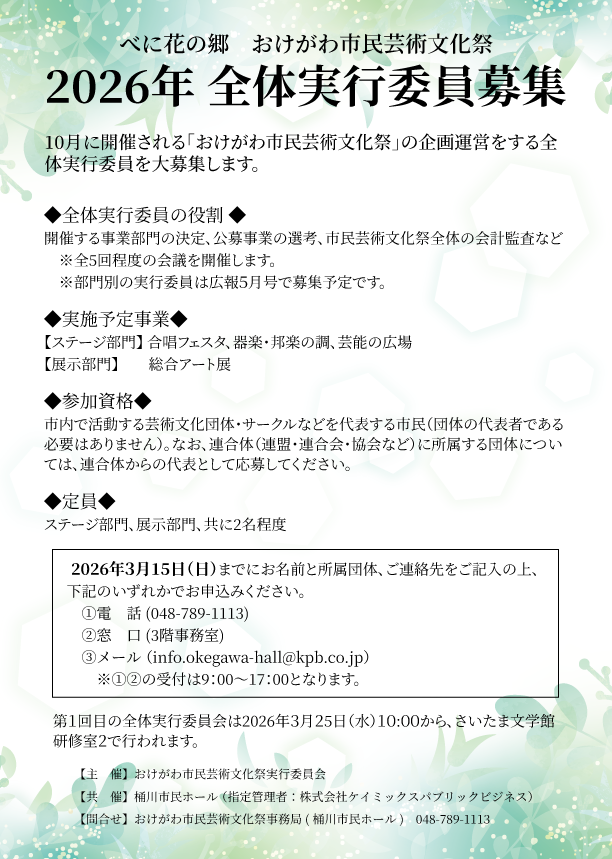 2026年2月20日 「おけがわ市民芸術文化祭」2026全体実行委員募集